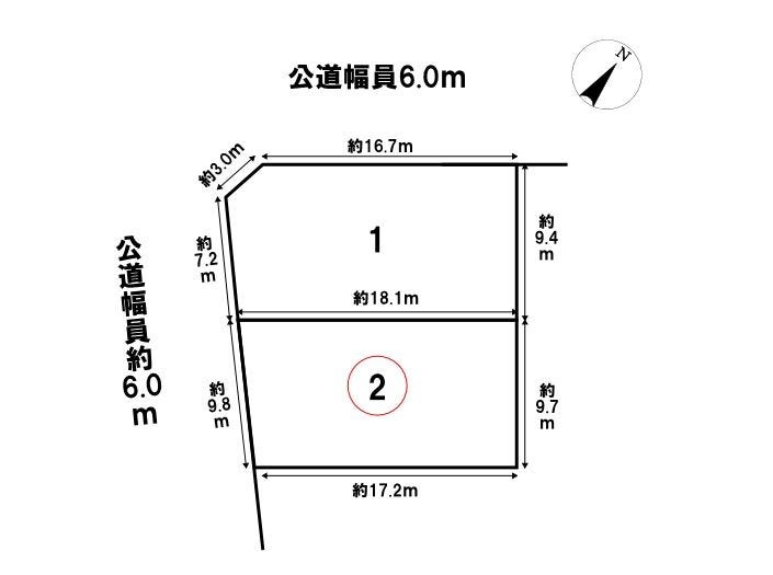 | 土地面積 | 172.96㎡(52.32坪) | 接道 | 西側(公道)幅 約6.0m 間口 約9.80m |